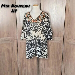 Women's Black and White Patterned Top Tunic