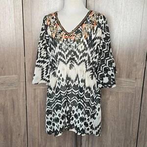 Stylish and comfortable black and white patterned top. Perfect for any occasion.