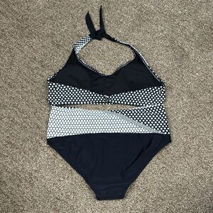 Women's Black and White Polka Dot Halter Style Tummy Control Bikini Size XL