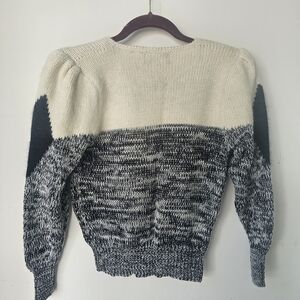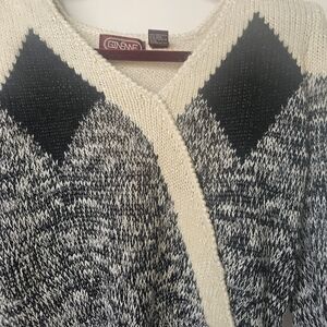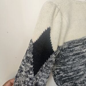 1980's argyle black and white sweater. Half puff sleeves with shoulder pads. Stay cozy and stylish with this elegant black and white sweater. Perfect for any occasion, this sweater offers both comfort and fashion.