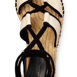 Keep it young and free-spirited with these espadrilles by Tory Burch. Featuring cloth details, a slight platform, and an open toe - these espadrilles sandals are ideal for the girl on the go during the warm spring-summer months.