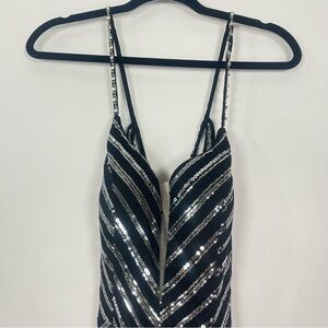 Women’s Black with Silver Sequin Mermaid Trumpet Gown Dress Size Small NWT