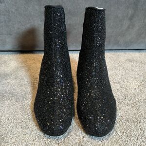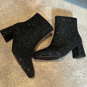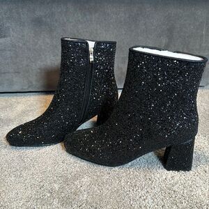 Women’s Black Glitter Covered Chunky Heeled Sparkly Boots Size 9.5 NEW