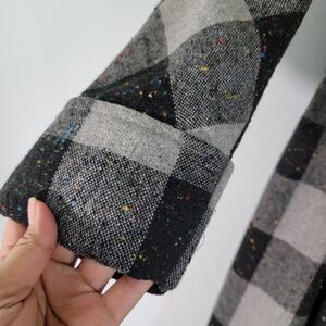 Black/Gray Plaid Dress Coat Sz 11 Belted Cotton Blend Pocket Academia
