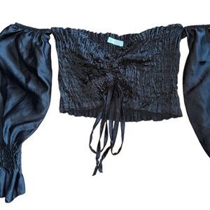 Women's Black Ruched Front Satin Off The Shoulder Blouse Size Small (No size tag)