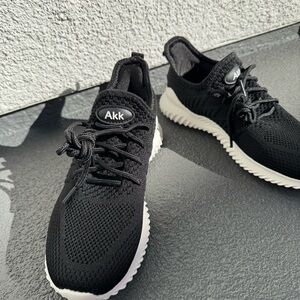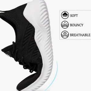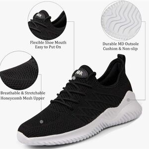 Womens BlackTennis Sneakers- Slip On Memory Foam Lightweight