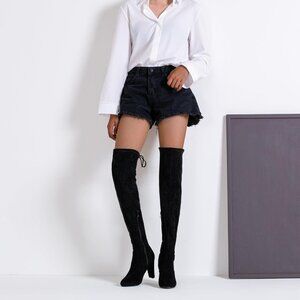 Women’s Black-knee High Suede Fashion Pointed Toe Thigh High Over The Knee Boots