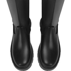 Non Slip The thigh high boots for women crafted with PU leather upper material, short plush/thick fur lining, and anti-skid rubber sole--prevent slipping.