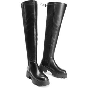 Delicate Vamp: These thigh-high boots come with two uppers, one is a full PU upper, and the other is a combination of PU and suede. Choose according to your style and preferences.