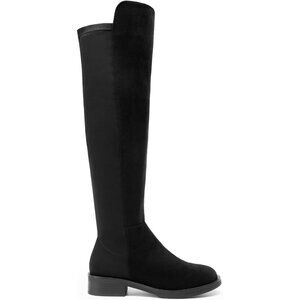 🆕Women's Black-suede Knee High Comfortable Thigh High Daily Low Flat Heel Boots