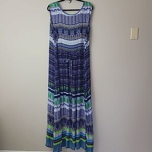 Women's Blair Blue and green/ Multicorlored Sleeveless Maxi Dress Size 3XL. Embroidered Scroll W/ Sequins. Ties in back. Super thin and light. Nwot.