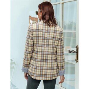Classic Design: Basic blazer jacket for women, a single front gold button, shawl collar, long sleeve with folded striped cuffs, solid color/plain, decorative fake pockets