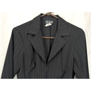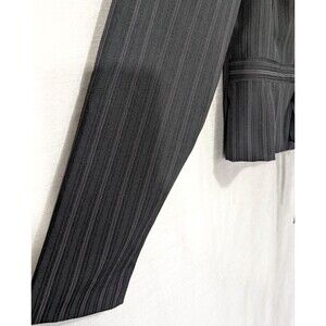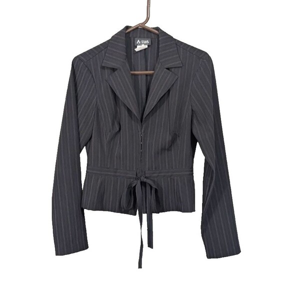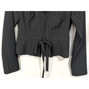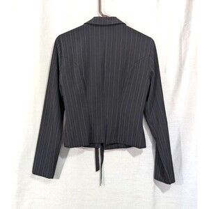 Women's Blazer Size 7/8 Black Pinstriped Hooks Front Tie Belt Long Sleeve Career