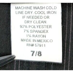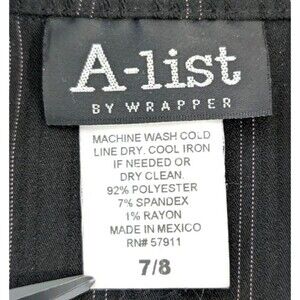 The A List Blazer in size 7/8 is a sophisticated and stylish piece perfect for various occasions such as workwear, formal events, and parties. This black pinstriped blazer features unique hooks in front, tie belt and long sleeves, giving it a modern and classic look. Made from a blend of polyester, spandex, and rayon, this blazer is machine washable and designed for a classic fit. With a notch lapel and single-breasted style, this blazer exudes a professional and business-like theme, making it a versatile and chic addition to any wardrobe.