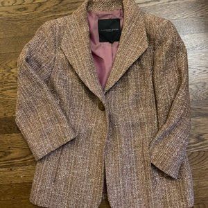Darling sandy colors with a little thread of a rosy peach for a little spunk. Single button closure and two pockets! I don't think this has ever been worn. The stiches are still in the inside hidden pocket and the back pleat. This is in new condition. The style and color goes with everything. Dress it up or down.