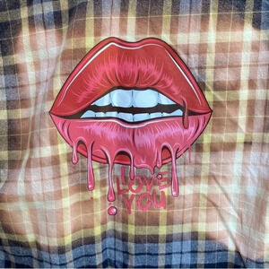 Good Condition, Upcycled, Repurposed Mens Flannel, Women Medium, 37 Chest Measurement, Red Lip I love you Graphic