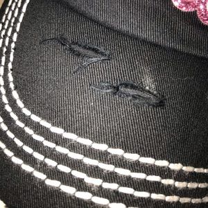 This is a brand new hat , It has never been worn or tried on! It is so gorgeous with the sparkles and the colors. It has all the original tags and even the cardboard on the inside. Let me know if you have any questions about this gorgeous hat 😊