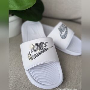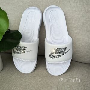 Women's Nike Victori One Sandals customized with Light Baby Blue Swarovski Crystals