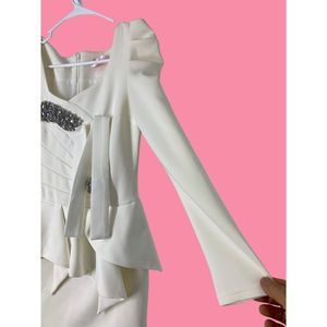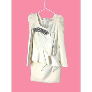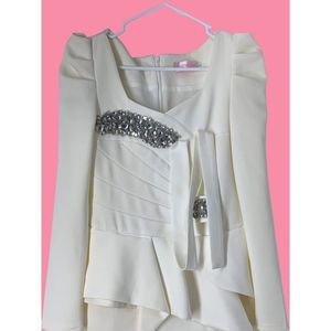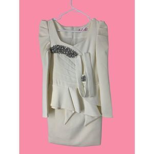 Womens Blingor White Scuba Bling Embellished Peplum Dress Size Small 4/6 5203