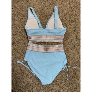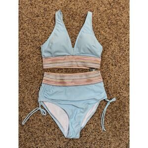 Women's Blooming Jelly V Neck High Waisted Bikini Color Block Tummy Control Suit
