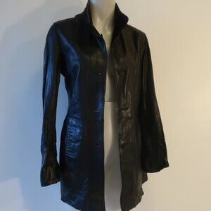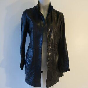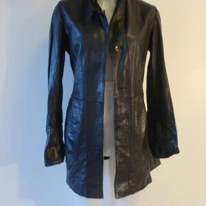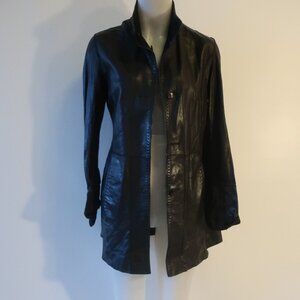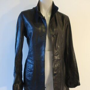 Womens Bloomingdale's Black Mid-Length Button-Up Leather Jacket S
