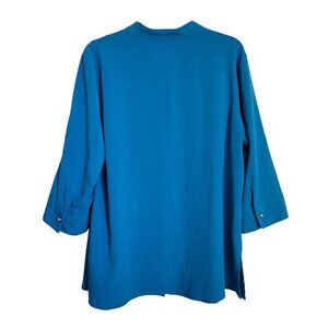 Crafted for comfort and style, the Kathy Che Stretch Button Down Blouse in size 14/16W offers versatile wear with a flattering fit, perfect for any occasion.