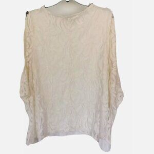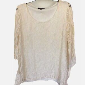 Women’s Blouse Large Ivory Lace Overlay Tank Sheer Butterfly Sleeve Top