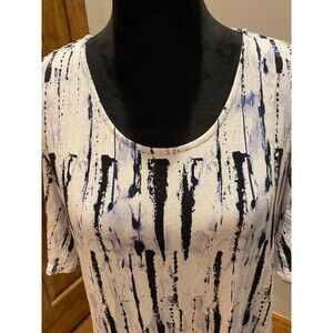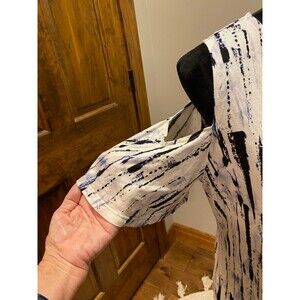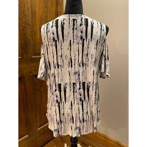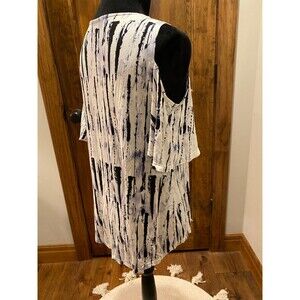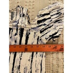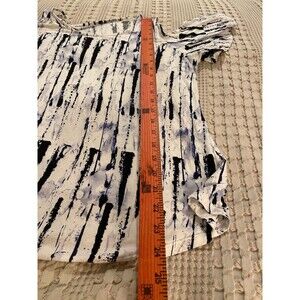 Womens Blouse ? Medium Navy Pattern Top Cold Shoulder + Stretch Short Sleeve