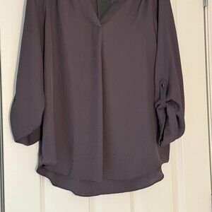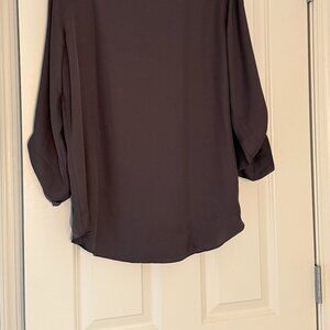 Women's Blouse NWT Jones NY Signature Brand, Dark Gray, Large, 100% Polyester, rolled sleeves with buttons