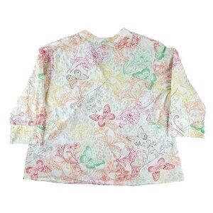 JM Collection Women's Blouse Pastel Colors Lightweight size 14 W with floral butterfly design in multiple colors.