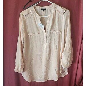 Womens Blouse Sheer Long Sleeve Pullover Beige Size Medium Dynamite