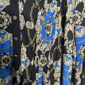 Womens Blouse Size Plus 2XL Blue Black Chain Equestrian Print Long Sleeve V Neck