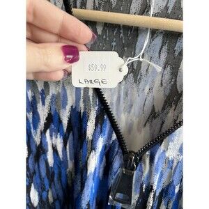 Women's Blue And White Coverup Dress With Zipper Detail Size Large NWT