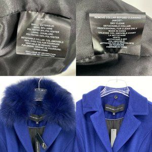 Women’s Blue Andrew Marc Wool Blend Detachable Fox Fur Collar Size 10