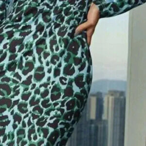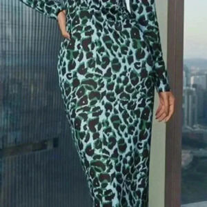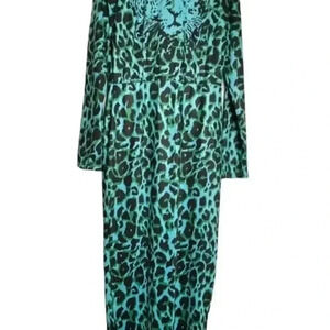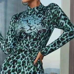 Women's Blue Animal Print Dress - Split - Long Sleeve Dress- Size Medium