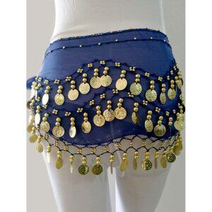 Women's Blue Belly Dance Scarf With 128 Gold Coins Skirts For Belly Dance