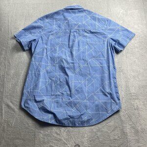 STIO Curtis Camp Shirt Women's L Blue Pearl Snap Organic Cotton Cowgirl Gorpcore