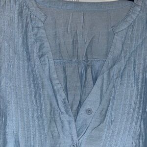 This v-neck high low shirt runs a bit bigger. There is no tag but my guess is a size XL or 1X