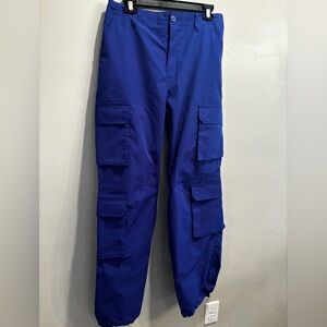 Women’s Blue Cargo Pants trendy fall bright size large minimal neutral boho