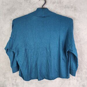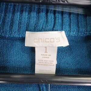 Womens Blue Chicos Open Front Cardigan Sweater Ribbed Trim Cotton Blend Size 1