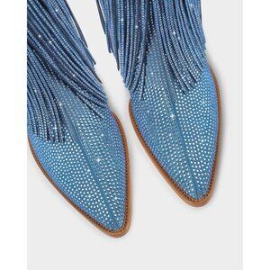 ⚡Women's Blue Cowgirl Western Boot Rhinestone with Sparkly Fringe Pointed Toe
