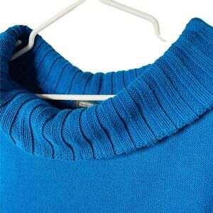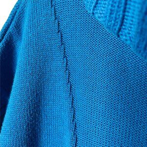 A trendy Kenneth Cole knit top for women in medium size with a stylish cowl neck design. The vibrant blue color adds a pop to any outfit, while the comfortable knit ensures warmth.