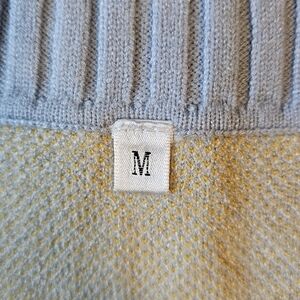 Women's Blue Daisy Knit Collared Sweater Vest Cap Sleeve V-Neck Pullover