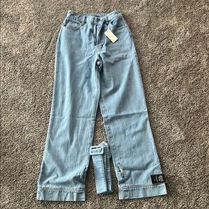 Stylish and comfortable blue denim jeans perfect for any occasion. These jeans offer a classic fit with a modern twist. The reason for selling I am 5”9” and a bit too short on me otherwise I would’ve loved to keep them . I could not return to original site because they were final sale.