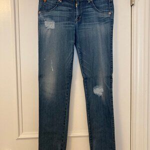 Stylish and comfortable, these blue distressed jeans are perfect for any casual outing. The classic design offers a versatile look that pairs well with any top.