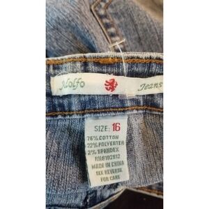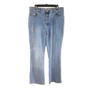 Stylish women's blue jeans featuring elegant embroidery. Perfect for casual outings.