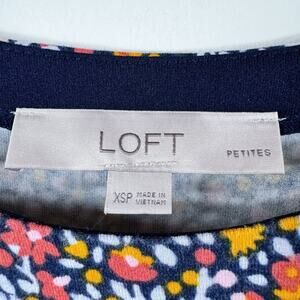 Women’s Blue Floral Dress Orange Ruffle Cap Sleeves XS Petite LOFT