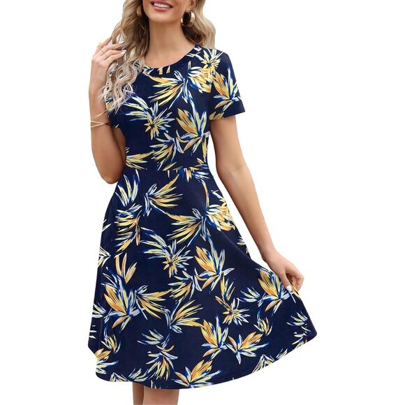 Features: Fit and flare dresses for women, floral tunic dress with pockets. Flower print dress for spring-summer. Simple elegant design, many solid basic colors. A necessity for every wardrobe. Can be worn on many occasions depending on what you accessorize.