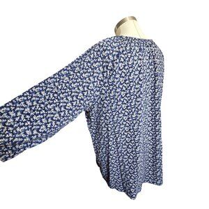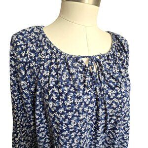 Womens Blue Floral Print Peasant Blouse Tunic With 3/4 Sleeves Size 2XL CM2011