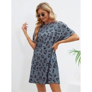 Women’s Blue Gray Leopard Print Drop Shoulder Dress